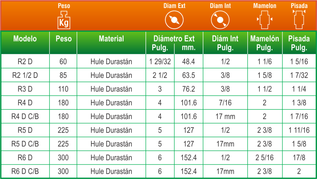 En las tablas encontrarás el código del producto de acuerdo al peso que soporta, los diámetros de la rueda y otras medidas. Llena el formulario con el número de piezas que necesitas en la(s) casilla(s) que requieras y te enviaremos la cotización. Si tienes duda de cuál es la que rueda que debes elegir, deja tu nota en comentarios y nos pondremos en contacto contigo para asesorarte. Si requieres algun otro modelo de nuestros productos por favor llena el formulario que se encuentra en su sección.