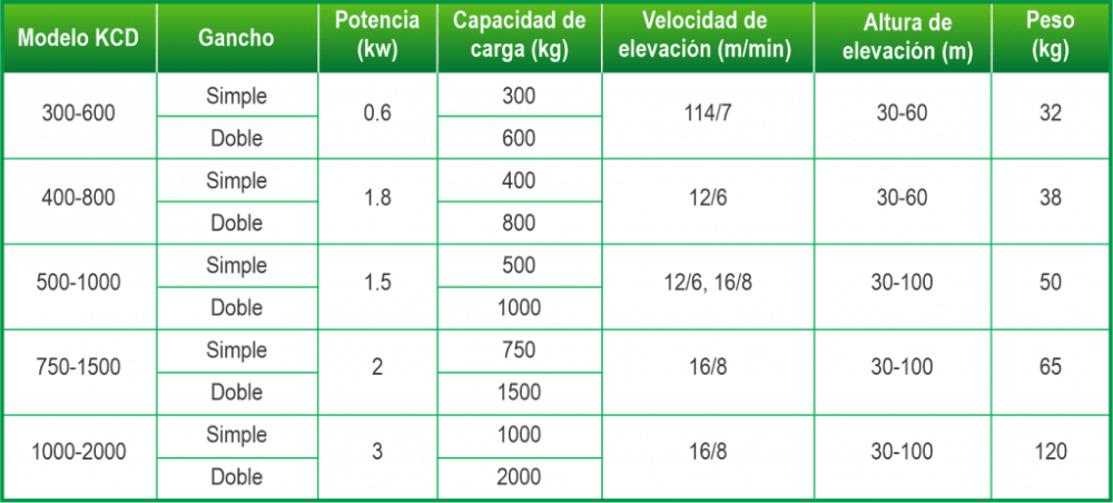 - Gran capacidad de cuerda hasta 100 metros (que permite aplicarlos al levantamiento, jalón, de cargas etc.