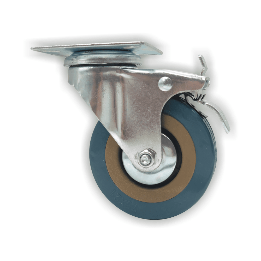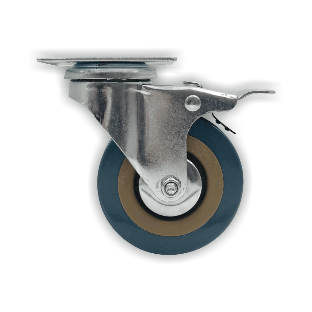 Rodaja giratoria con freno, rueda de PVC color Azul, Modelo Polivom Línea Azul