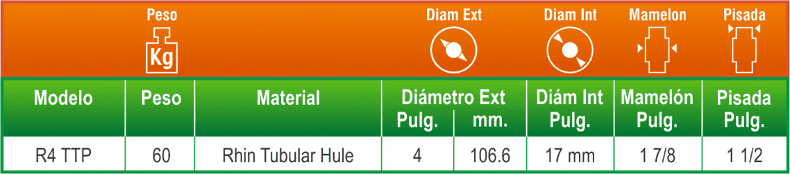 Usa como base un tubo de 1 ½ cédula 40, que le brinda resistencia a la carga. Se fabrica solo en 4” de diámetro y se usa en plantas de luz, hidro-lavadoras y equipos de movimiento continuo.