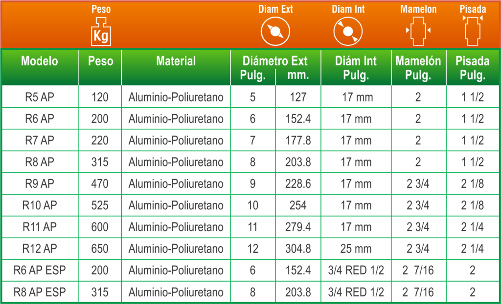 Estas ruedas combinan ligereza estructural con confort de rodaje, siendo adecuadas para equipos móviles que requieren buen desempeño sin exceso de peso. Se utilizan en aplicaciones industriales y comerciales donde la estabilidad y la reducción de vibraciones son importantes.