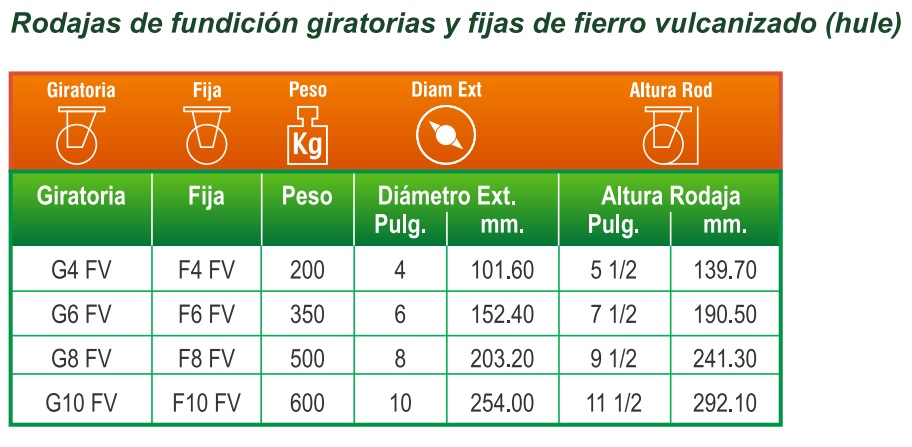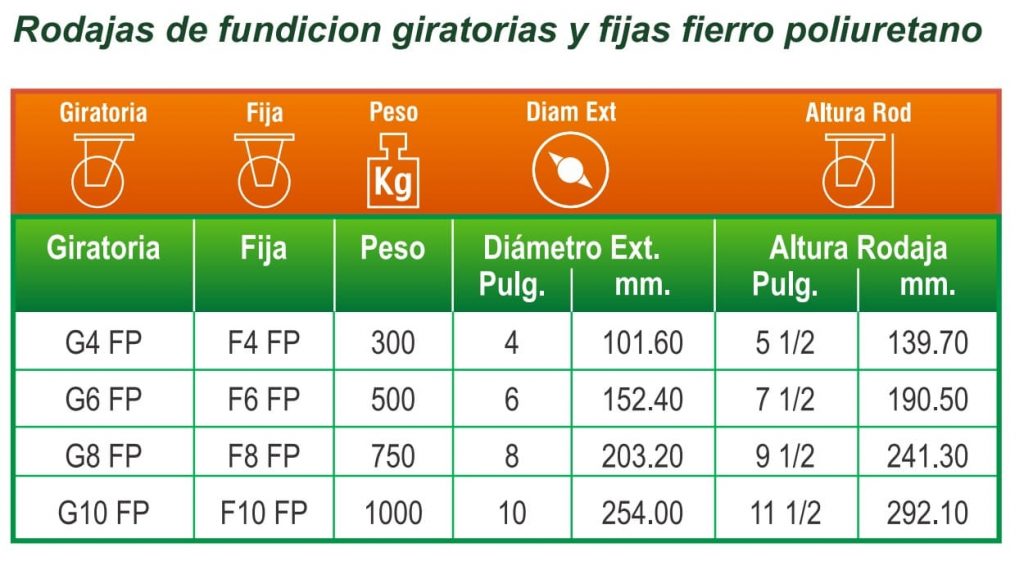 Las Rodajas de fundición tienen un alta capacidad y resistencia por lo que en Polivom encontraras todo lo que buscas en este tipo de ruedas, rodajas y horquillas de fundición.