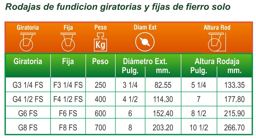 Las ruedas de fundición tienen un alta capacidad y resistencia por lo que, en Polivom encontrarás todo lo que buscas en este tipo de ruedas, rodajas y horquillas de fundición.