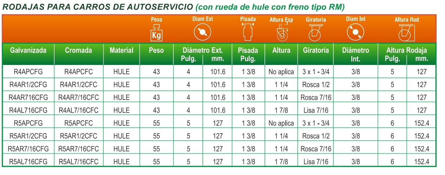 Rodajas para autoservicio con gran resitencia y durabilidad, precio especial a distribuidores de centros comerciales.