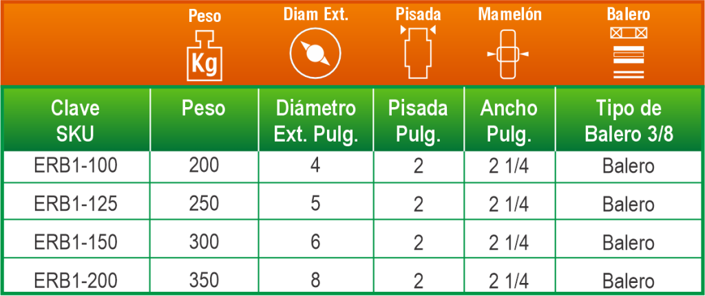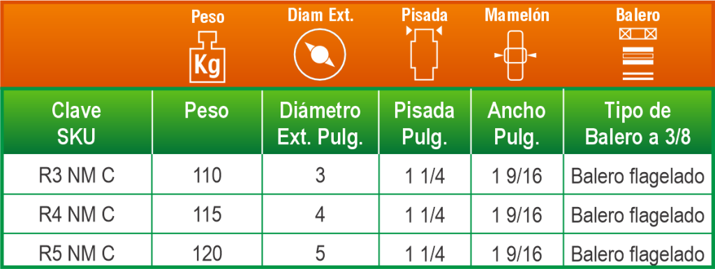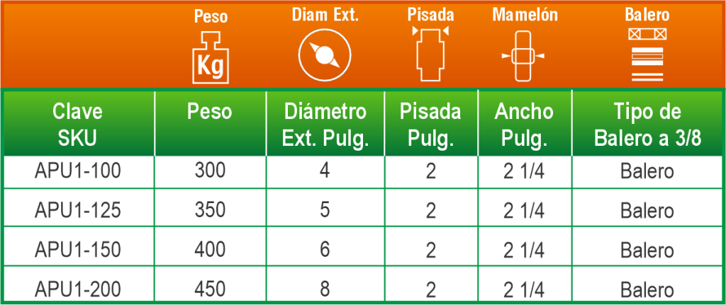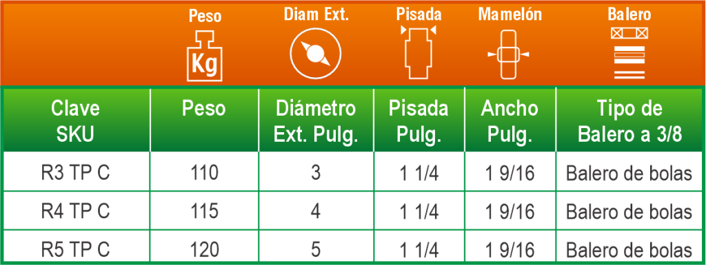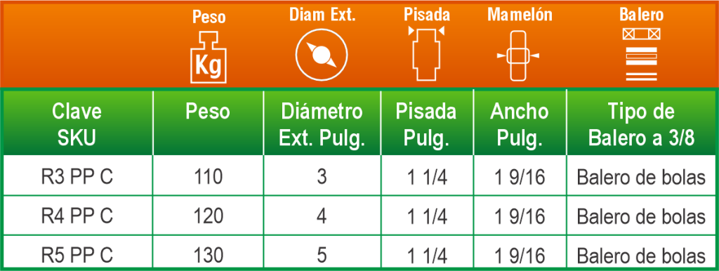 Ofrece un rodamiento eficiente y protegido gracias a su balero insertado con polveras. Es adecuada para aplicaciones industriales y comerciales donde se requiere suavidad de desplazamiento y mayor durabilidad del sistema de rodamiento.